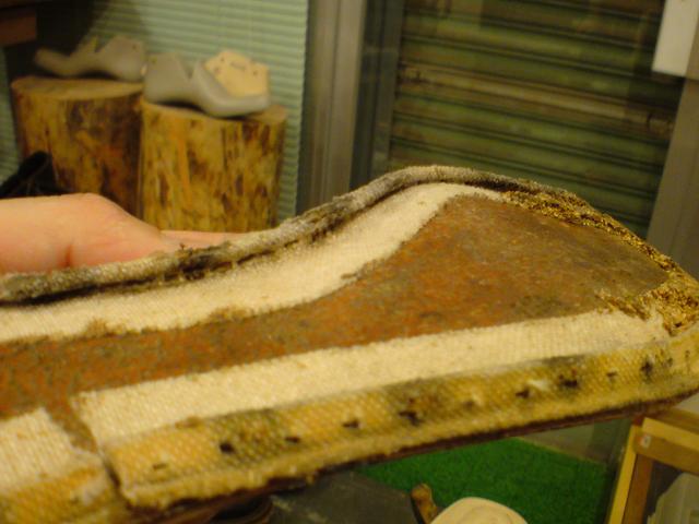 巷では修理が何度も・・・と言われておりますが、ハンドソーンとは違い布製リブテープを接着しているだけなので、経験上リウェルトを含むオールソールの修理は2〜3回が限度と思われます。