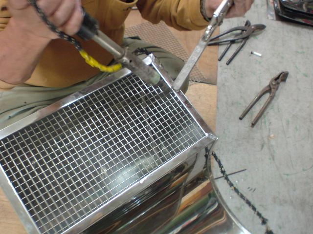 手曲げで癖付け、ハンマーでトントン、ハンダ付けでジューッと、いっちょ上がり。簡単に言ってますが、真似できません。